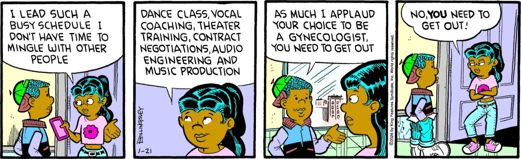 The only comments so far on Comics Kingdom show equal bafflement, wondering where the “gynecologist” comment comes from. One commenter notes, “There’s oblivious, and then there’s Curtis Wilkins”, which I tend to agree with.