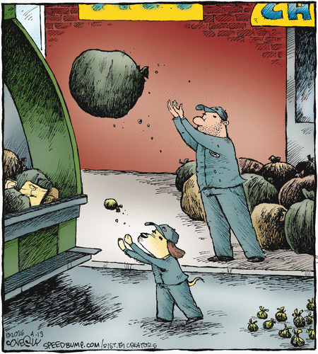 Kedamono sends in this one: “I can’t decide if this one is a LOL or an OY. Still, there is something graceful in synchronized garbage tossing.”