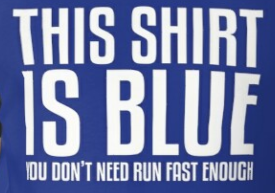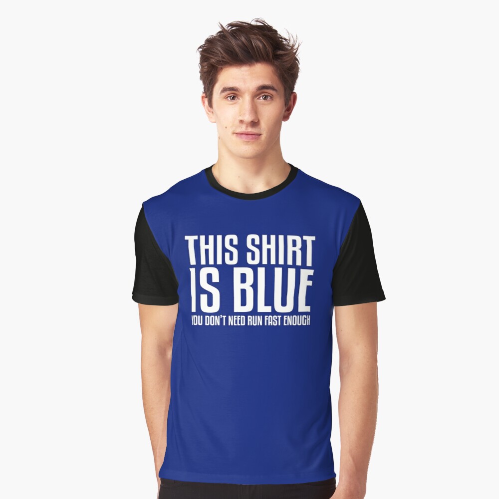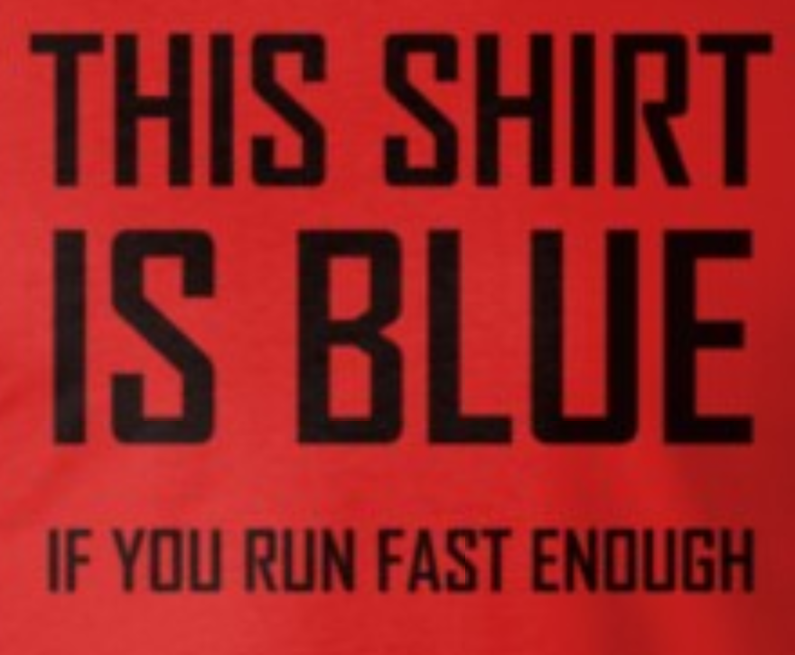 The second shirt is, in turn, a reference to Doppler shifting of light (which, among other things, says that colors shift towards blue if you move towards them quickly enough).
