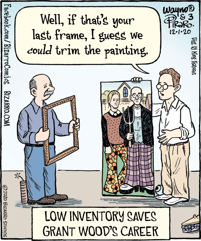 I’m amused by the Grant Wood ‘toon, as the original image is only about 8 in x 10 in. Though even at that scale, trimming it would have been a smart move.