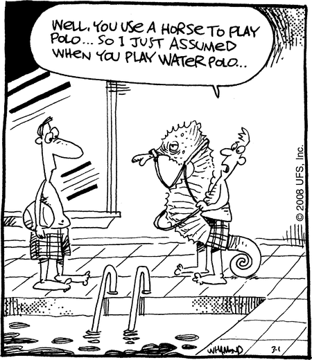 Hannukah is over. This has nothing to do with Hannukah. Just some comics about polo, from Kilby.