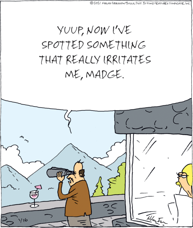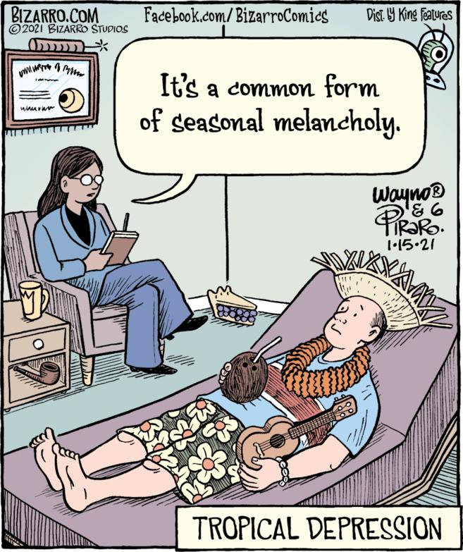 From larK: “I mean, I understand the whole setup and expected punch-line, I just don’t understand the actual execution of the punch-line: ‘now I need oxygen’? As opposed to fresh air? Huh? How does that tie up the I went-out-to-cheer-myself-up-but-got-even-more-depressed-instead gag the strip is going for?”