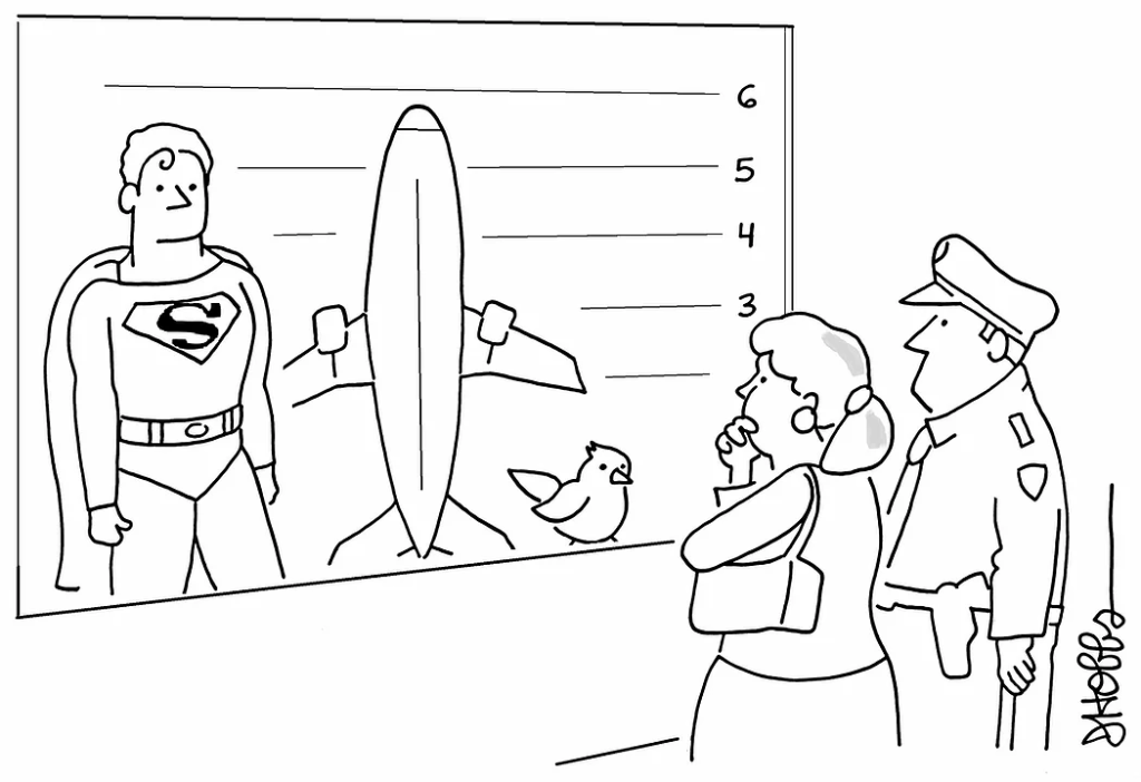 Cartoonist recommended by Dan Piraro on the Bizarro blog. (And credited by Piraro with coming up with the idea for the “Bird / plane / Superman lineup” Sunday Bizarro we looked at last week.)