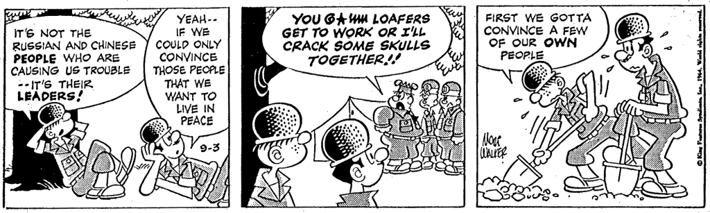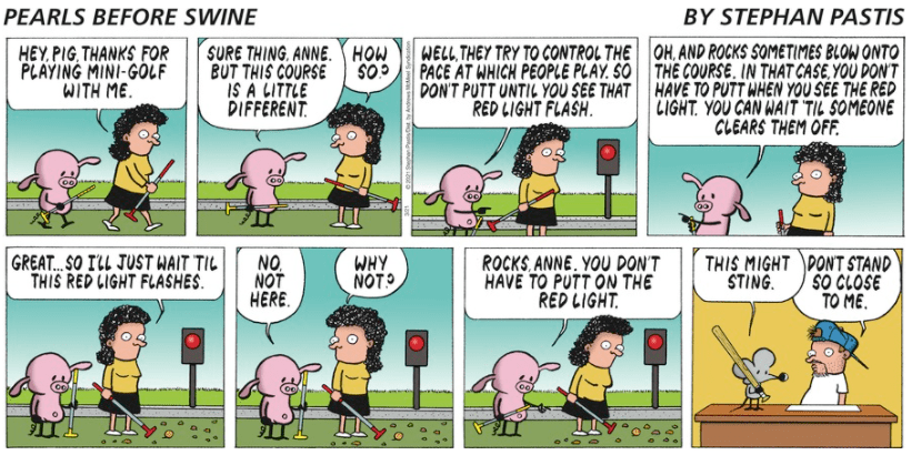 This is sort of weird. Panel one doesn’t say why the wedding were postponed, but it’s a clear reference to the pandemic. But then in panel 2 there’s a packed line where no one is wearing masks.