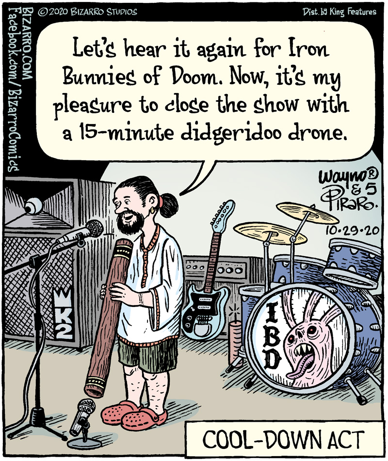 Carl, I didn’t mean that reply as “correcting” you at all (and btw you have my sympathies!), as I also saw that IBD and figured it must be standing for irritable bowel d[isorder]. So it was a surprising addendum that Wayno claims it actually was a callback to his October cartoon. But still just an addendum, not a disagreement.
