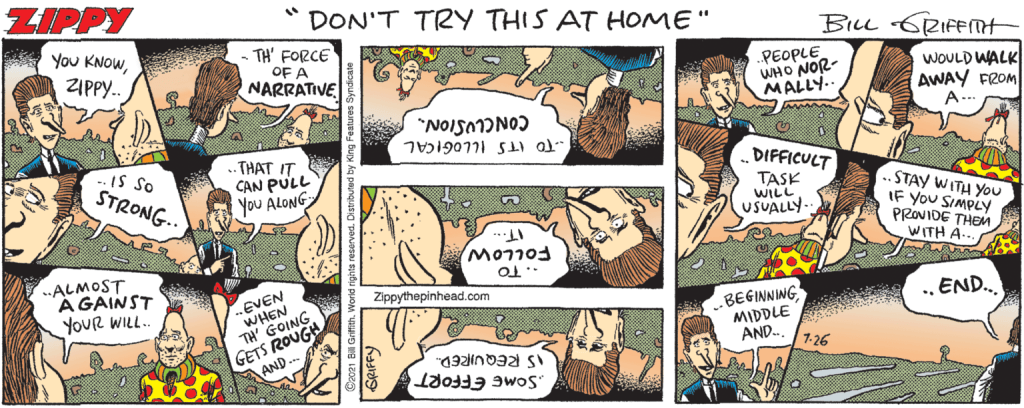But there’s no narrative to follow in this strip; it’s just some guy talking about narrative.