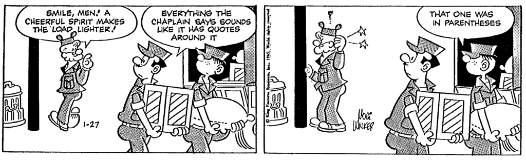 Did the chaplain walk into a pole, and is cursing? Those look more like pain symbols. Or is he known for complaining, and the moment of uplift (hah!) was an interruption of a usually dismal demeanor? But that’s not my impression of him. Still, is there any other good interpretation of the ‘parentheses’ remark?