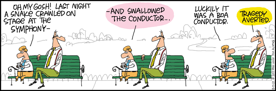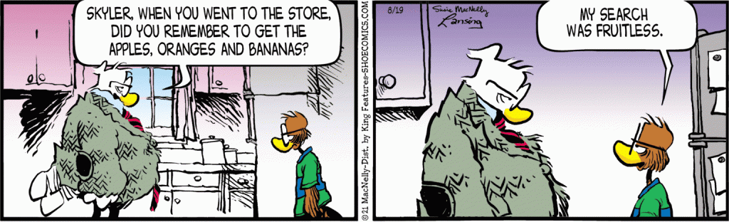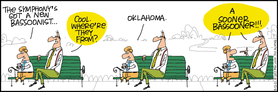This was a momentary CIDU, for want of a comma. Sent by Boise Ed. Ed did some research on our behalf and reports “If you look in the [GoComics] comments, you’ll see that it caught Mark Parisi by surprise.”