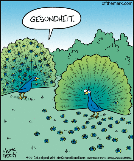 I don’t quite get the Close to Home one. I mean, yeah, the spots came off her dress onto the chair, but how did they do that? The peacock’s spots came off because of the force of his sneeze; that’s a common enough trope. But just sitting?