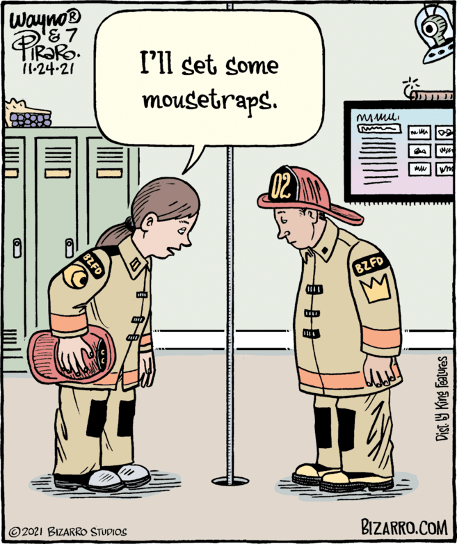 And in the final panel, when detective Stan tries a twist comeback, does it work? Well, we get what is probably his point — *everybody* exposed to social media is already suffering from the dangerous atmosphere. But does that mean they/we are all canaries? Or that it’s too late for a canary-warning and it’s already hurting the miners, which is all participants. In the story of the traditional practice, even if you are a bird lover, the canaries are the sacrificial population and the miners are the protected population; if the gas is getting to the miners, the warning system has already failed, which I take it is most of Stan’s point.