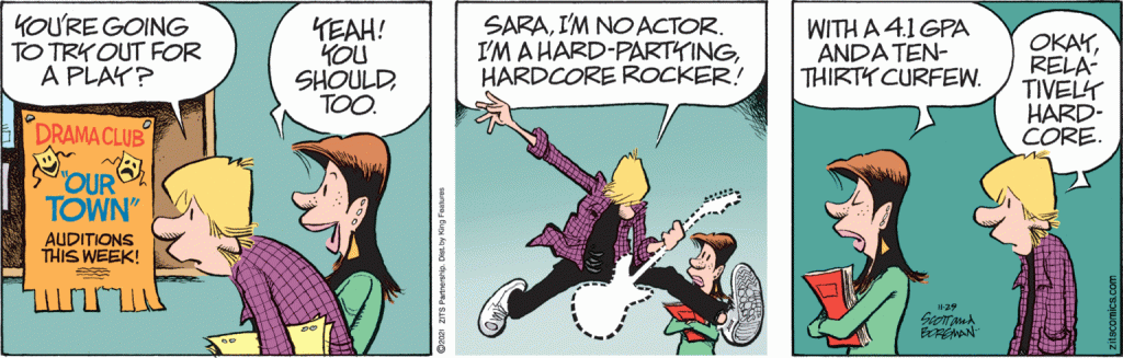 From Chemgal, who says “I thought the highest possible GPA was 4.0. Are they using a different scale in Zits?” She mentions she can think of a possible explanation, and I think I know what it is too, but even if it’s not a full CIDU there may be enough uncertainty for people to discuss as a Semi-CIDU.