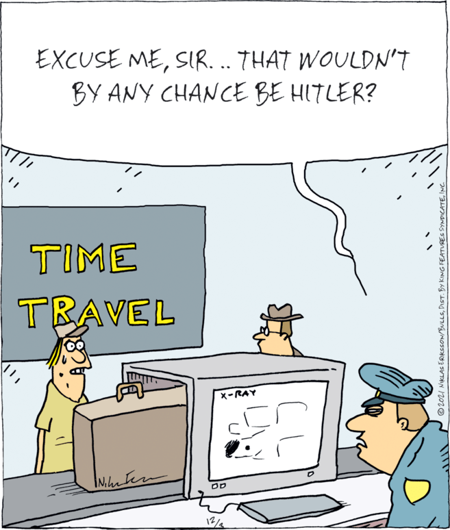 We all know one of the standard time-travel puzzlement plots involves killing Hitler young. But what are the stories about smuggling him away in your luggage?