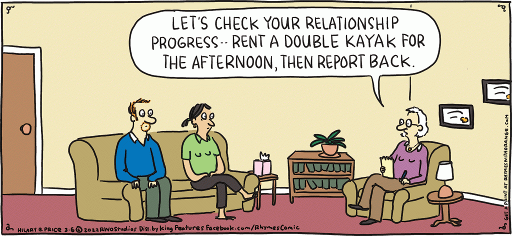Pretty sure Stan’s got it, but it seems one would have to have ridden in a double kayak to get the joke. That’s a pretty risky assumption on the part of the artist.