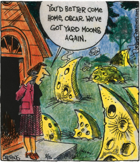 @ Wendy – I agree that the objects in the comic are definitely an infestation, but if you’ve ever driven down a country road in certain rural Ameican neighborhoods, you’d think that the gaze balls are reproducing like rabbits, too.
