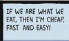 The “fast, cheap, and easy” line has been around since at least the 90s; I can accept it as a little “throwaway” on Ginger Meggs, but not as the punchline for an “original” comic strip joke. Also, I like the late Victor Buono’s version of the saying: “‘You are what you eat,’ said a wise old man, and Lord, if that’s true, I’m a garbage can.” (From “The Fat Man’s Prayer,” 1971)