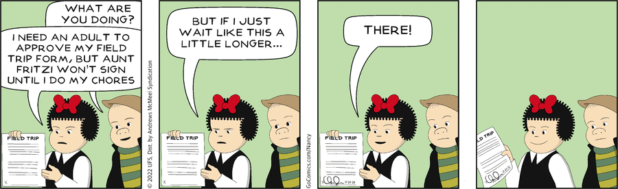So it’s easy to understand: a sentimental interaction. But how do we understand this as a comic? Is there any sort of joke, or comedy, or humor (apart from calling positive toned emotions “a good humor”)? As our category asks, Is that all there is?