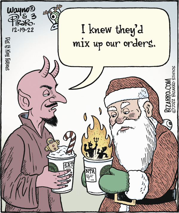 No, really, who is the Santa, and who are the critters? And what are they taking turns at?