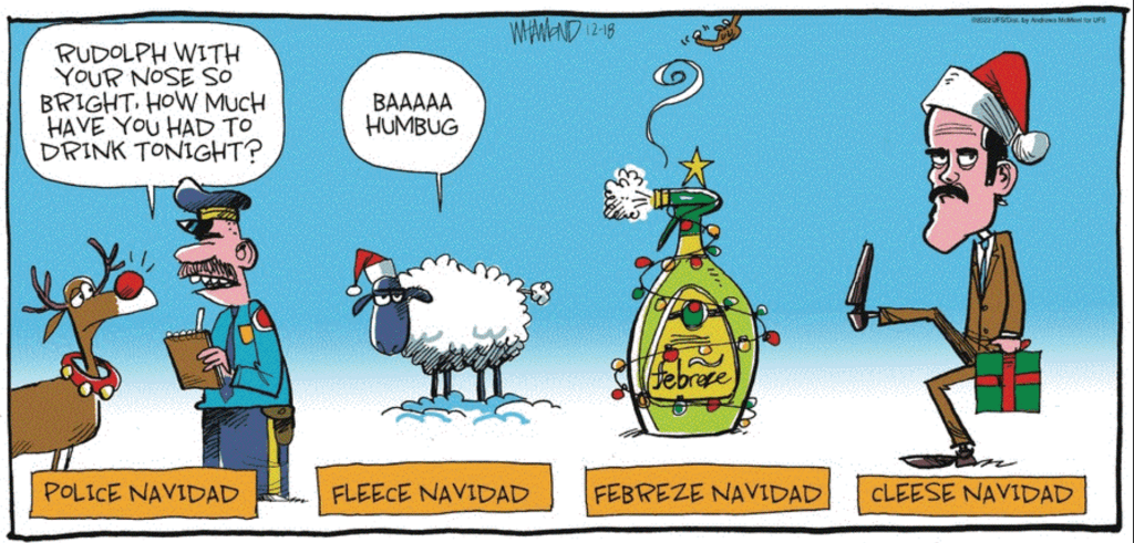 Andréa sends in these. Good to see the Ministry of Silly Walks getting into the holiday spirit.