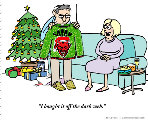I think we’ve seen the “Santa/Satan” pun before, but all I was able to find was a version with “Stan“: