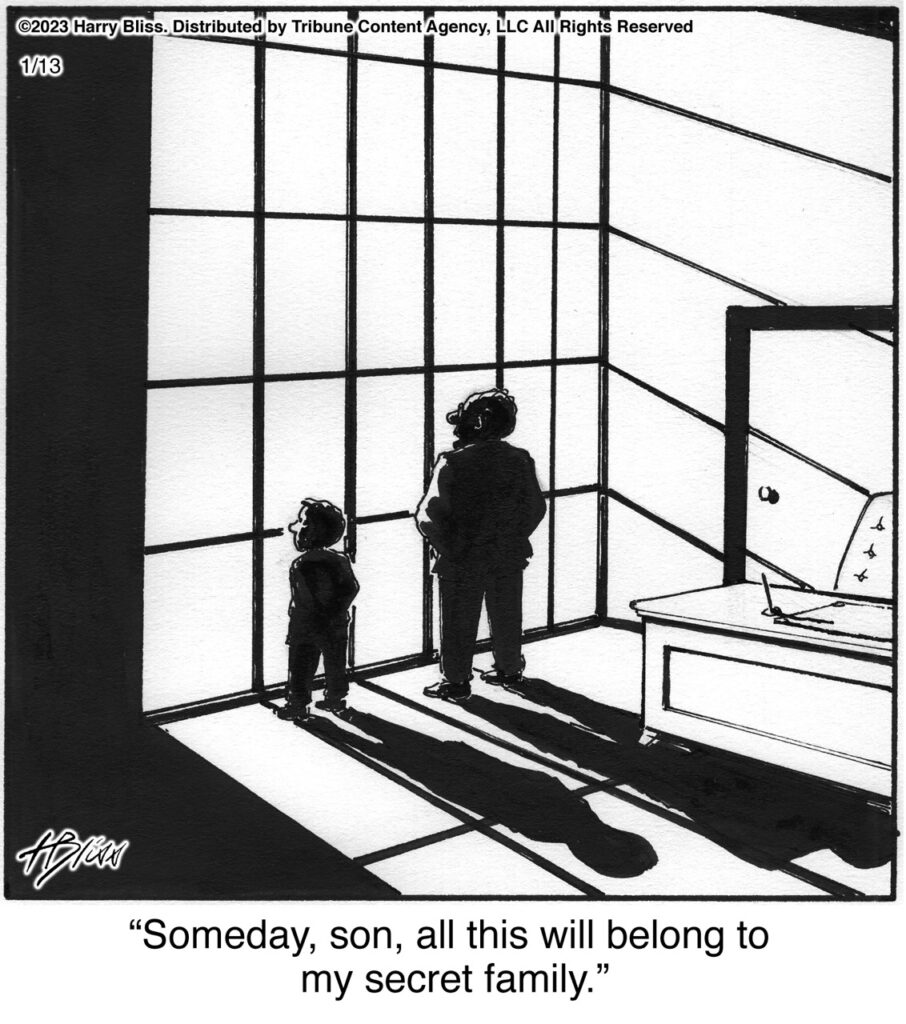 Yes, it’s something of a CIDU, raising unanswered questions, even if they aren’t deep questions. Is the boy from his public family, or his secret family? And either way, what is the point of this conversation? (Besides getting to enact a takeoff on this erstwhile very standard capitalist melodrama scene.)