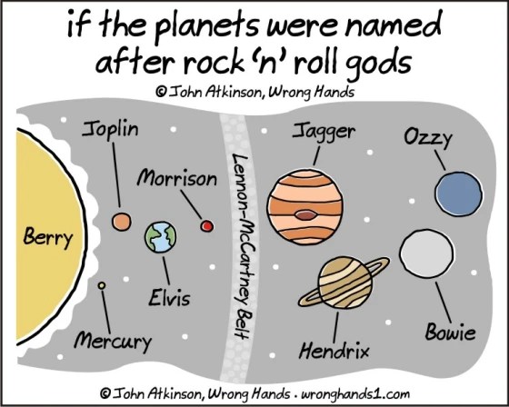 The joke started OK with planets being named after Roman gods, but got lost in the transition to Rock gods.
