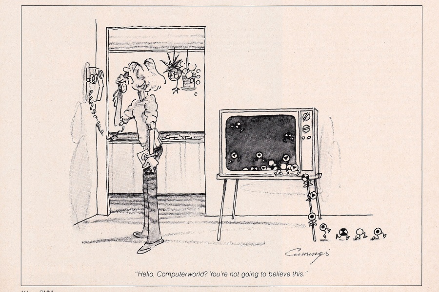 Ken scanned this from an OMNI magazine that surfaced in his storage (April 1984 issue) — does anyone recognize the signature, or can figure it out from that info? We’re putting Art Cumings as the tag, on the basis of some memory pages saying he did some work for OMNI; but there doesn’t seem to be enough of a similarity of style. http://mikelynchcartoons.blogspot.com/2012/09/art-cumings-june-9-1922-august-28-2012.html