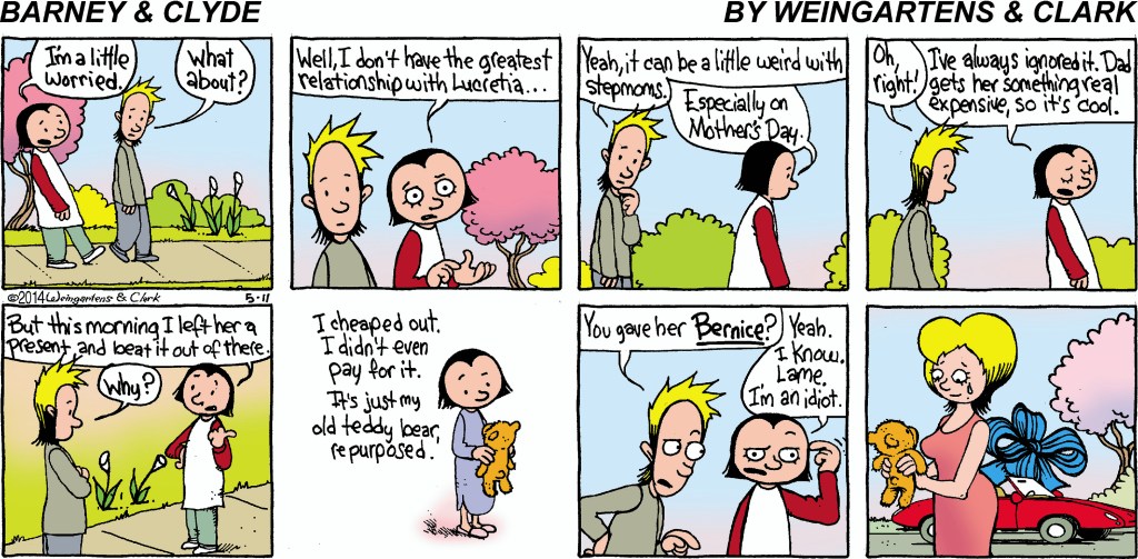 One might think that Wayno’s blog would help, but his comments on this one were mostly about how he rearranged the panel version for the strip version.