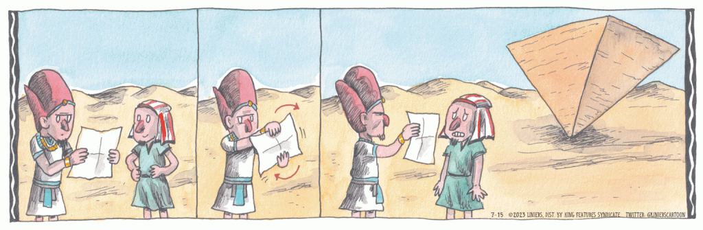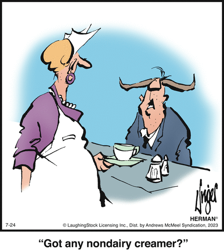 Suggested by Dirk the Daring, who notes “Me thinks David Sipress has never left the city. The cow and pig in the background aren’t too bad, but up front we seem to have a cow with pig nose and maybe a pig with a cow tail. Or maybe not.