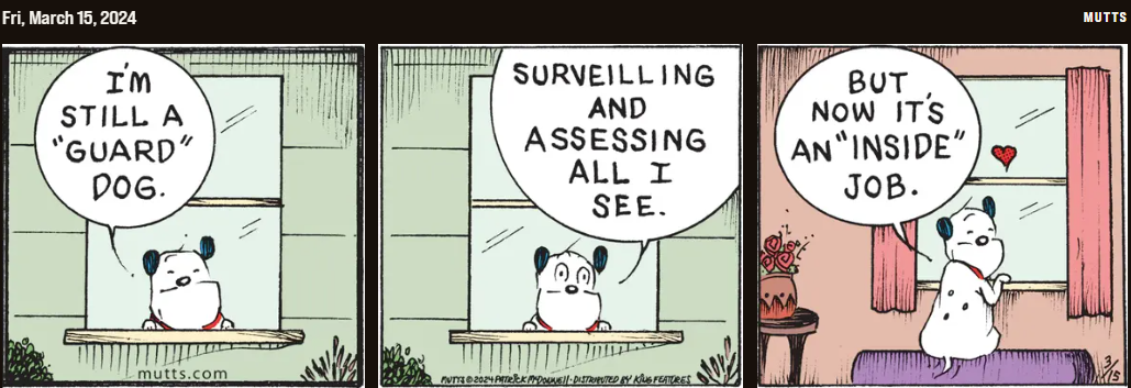 Mutts now has Mooch and Earl discovering Guard Dog and trying to rescue him, and I suspect that they will somehow succeed.