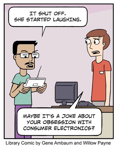 And while we’re wondering, would a library help desk (or even moreso, a reference desk) offer to help patrons work their own devices? (Beyond providing the netname and password if they offer free wi-fi on the premises.)