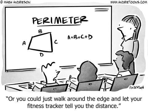 Pi Day (March 14, or 3/14) gets a lot of play in the U.S., but doesn’t work in other countries that write dates as DD/MM/YYYY, so it becomes 14/3. An alternative in those areas is e day, after the base of natural logarithms, e, (2.71) on 27 January. So, we’re going to avoid the Pi Day rush and post some math cartoons today.
