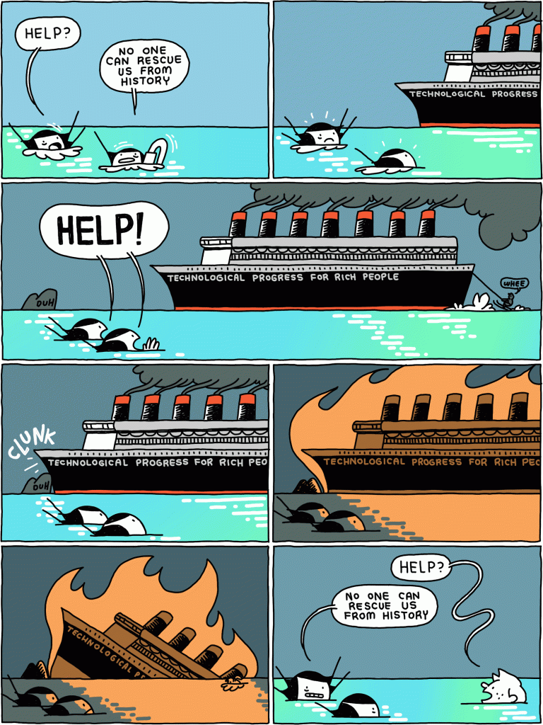 Well, these do seem linked but different. What can provide a rescue from history? Technology maybe? No, says the top entry. Then maybe philosophy? Dopes the lower entry also say No to that suggestion? Or does it offer some hope? And how the heck can intoning Derrida’s name as parts of other words invoke any magic?
