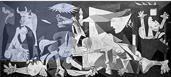 One year in college I taped a poster of Guernica up on the wall of the shared livingroom of my dorm suite. . I think the room was probably as messy as the one shown in this cartoon, but minus the good creature comforts.