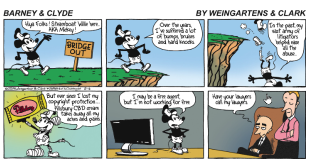 A few takes on Mickey Mouse entering public domain. The Pinocchio one is particularly apropos.