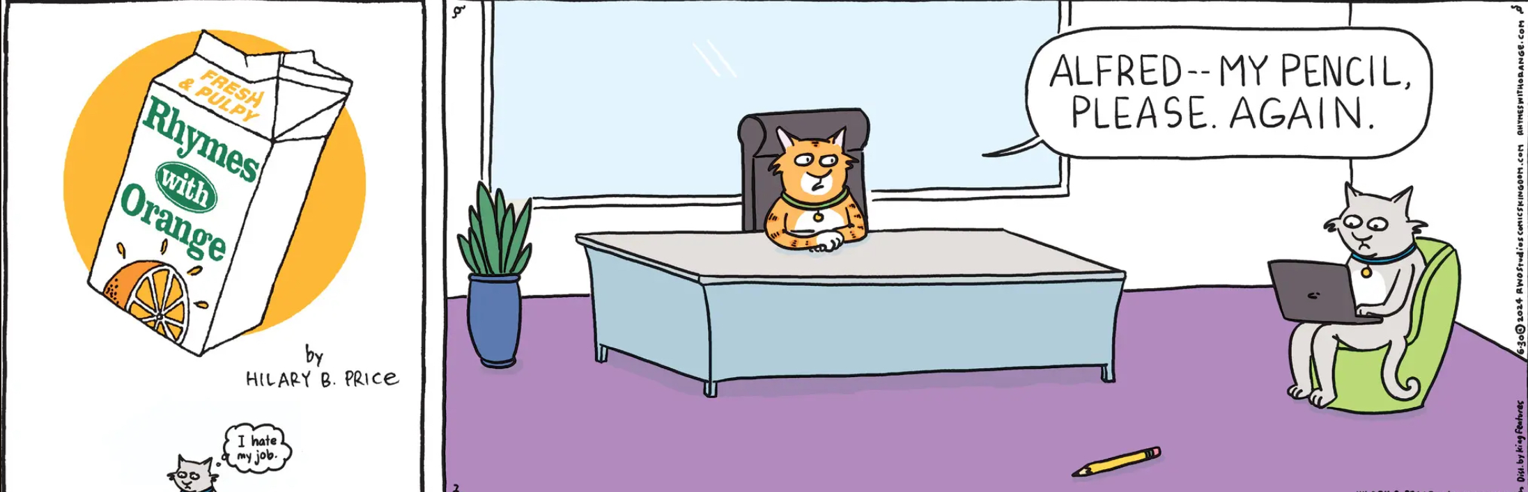 Robert Kinney sends in this Rhymes With Orange, which we thought goes well with the Bliss in this post and the discussion of Business Cat.