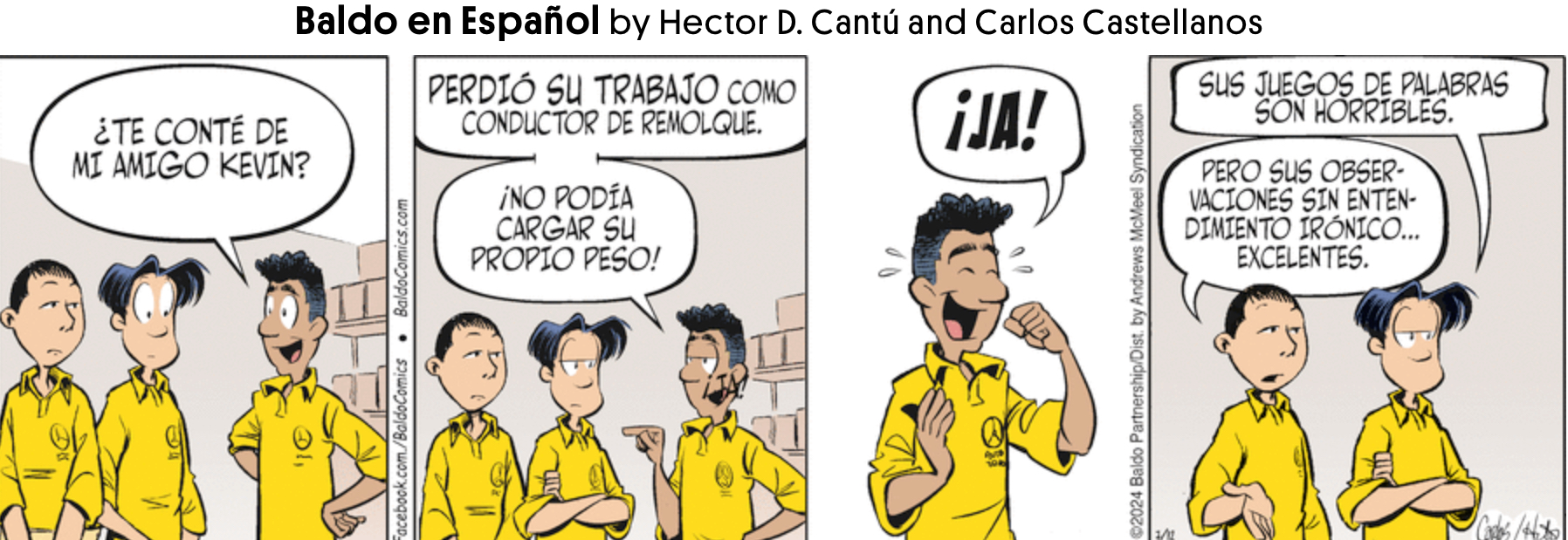 As we have asked before with Baldo, does the joke depend on language, and does it work in both the Spanish and the English versions of the strip?