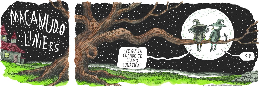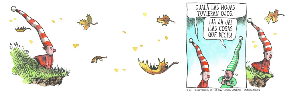 The Spanish dialog means: “I wish the leaves had eyes.” – “Ha ha ha! The things you say!“