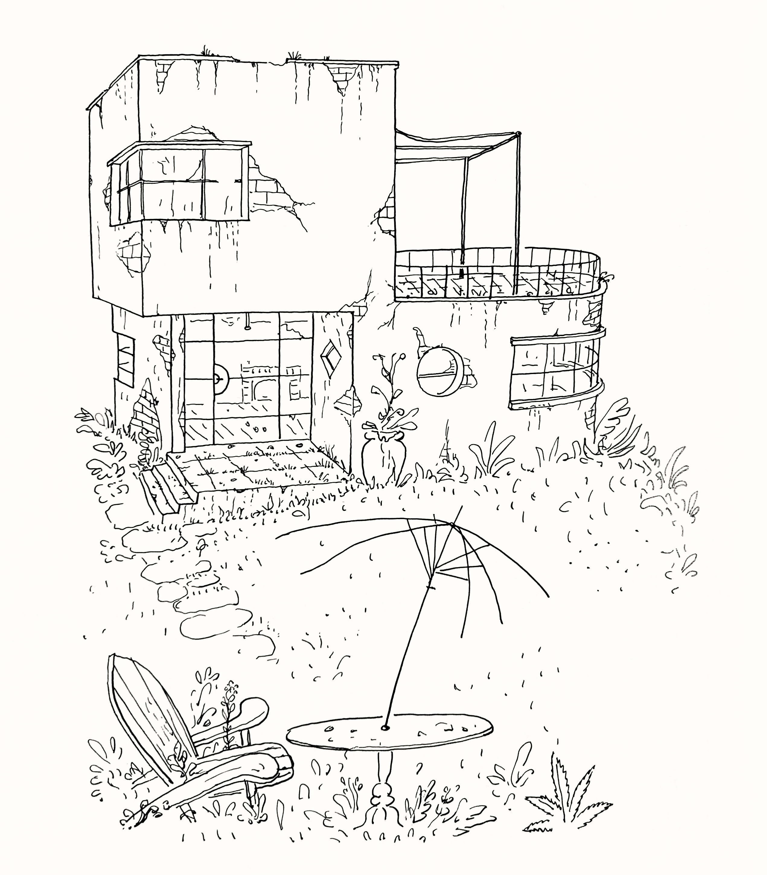 Recalling one of my favorite Saul Steinberg drawings, showing a decayed art deco house surrounded by untended grass. It was drawn in the 30s or 40s, when the very idea of sleek moderne buildings looking old was an unexpected joke.