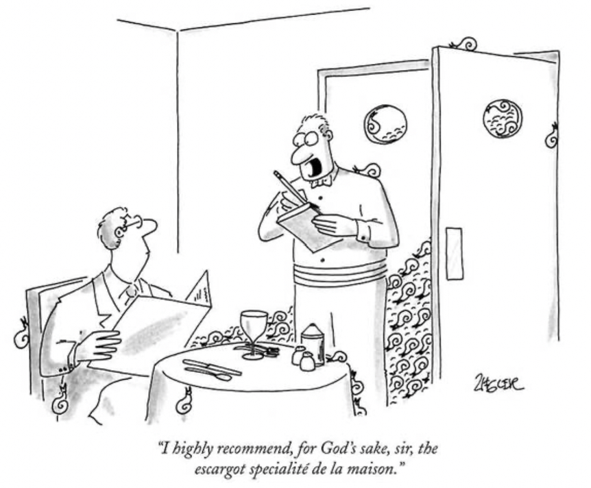 One thing I particularly enjoy about these is the often multiple layers of obsolescence. For example with this one we have: family eating together; landline; maid (!); and of course the actual punchline.