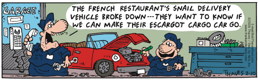 I collect what I call “obsolete jokes”: jokes that are no longer funny because technology—not the Zeitgeist—has passed them by. (The latter are common–consider most political humor, whose half-life is often quite short.)