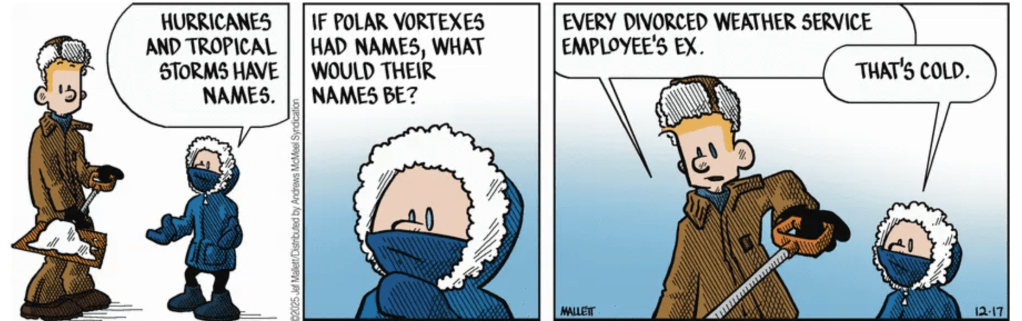 First of all, isn’t it “vortices”? Second of all, my understanding is that there are just two polar vortices (North and South); they don’t form and dissolve the way storms do.