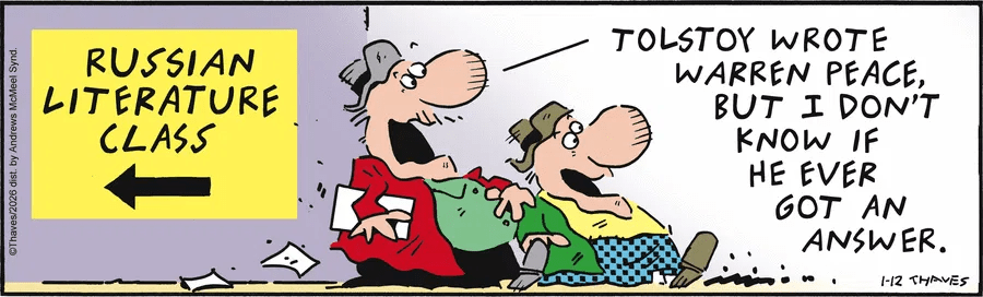 January 17, 2026January 13, 2026 by zbicyclist Saturday Morning OYs January 17, 2026 (Not a Cidu), Oy Argyle Sweater, Close to Home, Cornered, Frank and Ernest, John McPherson, Mike Baldwin, Scott Hilburn, Thaves Leave a comment Related