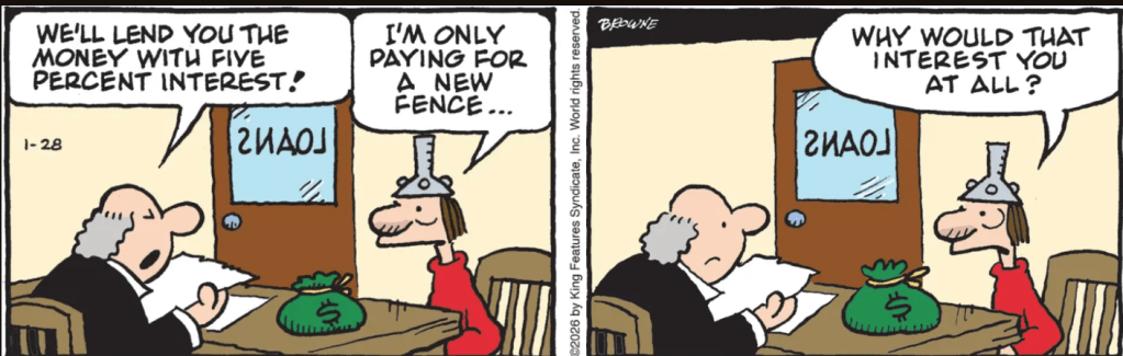 January 31, 2026January 27, 2026 by multipleciduers Saturday Morning OYs January 31, 2026 (Not a Cidu), Oy Browne Creative Enterprises, Dustin, Ellen Liebenthal, Hagar the Horrible, Jonny Hawkins, Mostly Gravy, Steve Kelley and Jeff Parker, Street Scene Leave a comment Lady Poste sends this winner for a Saturday OY! Related