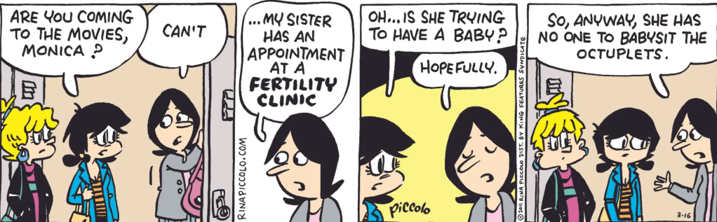 Mitch4 sends this in: “Seems like the fertility clinic has already done their job, only too well — and the sister ought to be staying out of that place, not going back!”