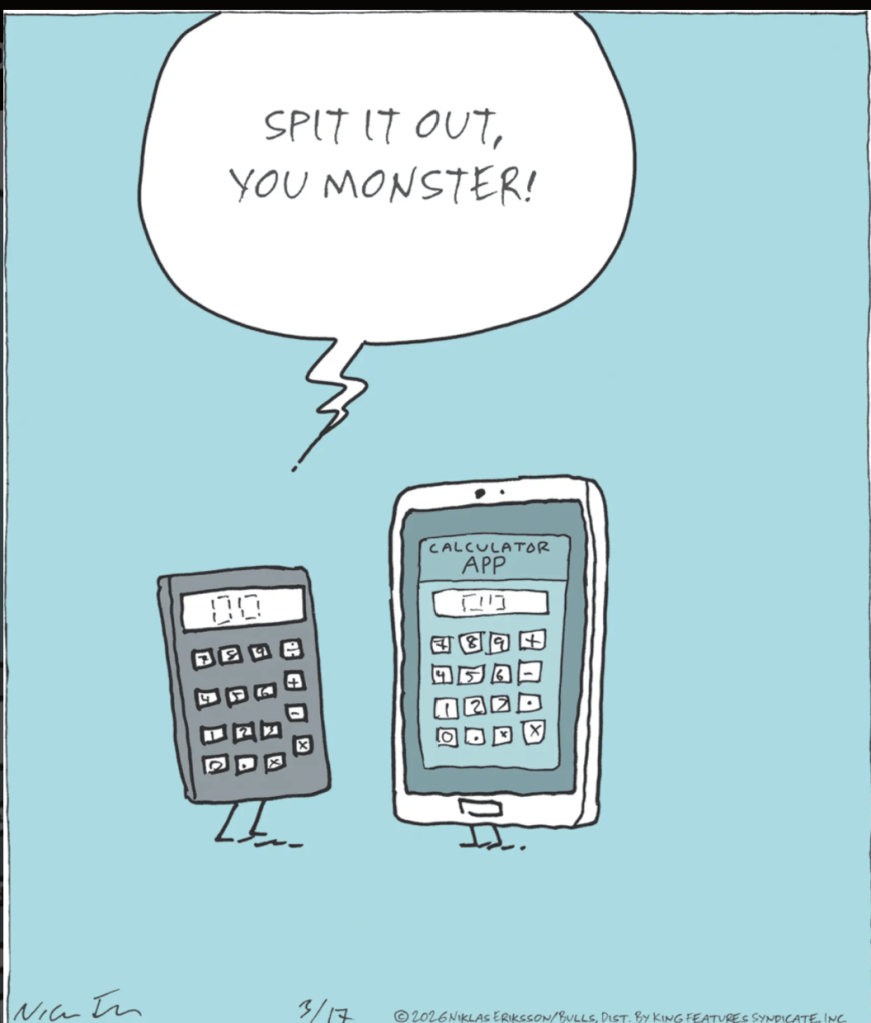 The calculator supposes that the smartphone has swallowed a calculator and is demanding that it be coughed up.