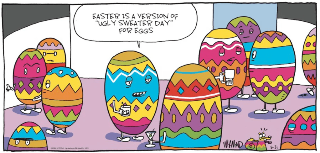 April 5, 2026April 4, 2026 by multipleciduers Sunday Funnies – LOLs – April 5, 2026 (Not a Cidu), LOL Asher Perlman, Dan Collins, Daniel Kanhai, Dave Whamond, Gasoline Alley, Jim Scancarelli, Looks Good on Paper, Reality Check, The New Yorker Leave a comment Happy Easter! / Happy Passover! We all have one relative like that … or maybe we are that one relative. Related