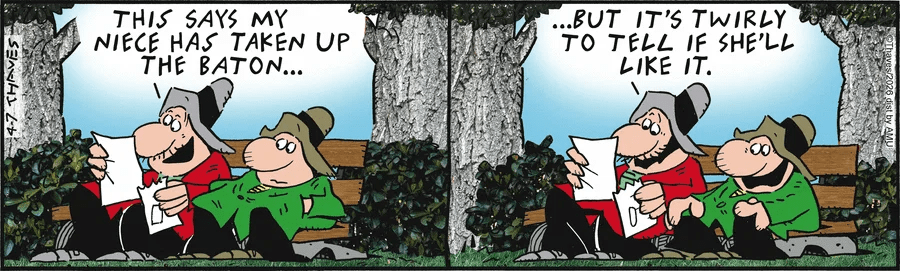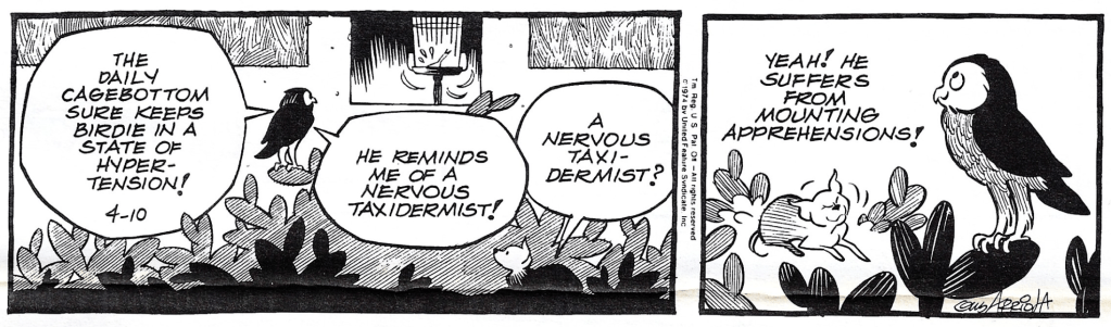 April 11, 2026April 10, 2026 by zbicyclist Saturday Morning OYs April 11, 2026 (Not a Cidu), Oy Chris Hallbeck, Frank and Ernest, Gordo, Gus Arriola, Justin Thompson, Keith Tutt and Daniel Saunders, Lard's World Peace Tips, MythTickle, Thaves 2 Comments Mitch4 sends this in: “Nice job, the pun is two words onto one.” The cage bottom is lined with the newspaper. Related