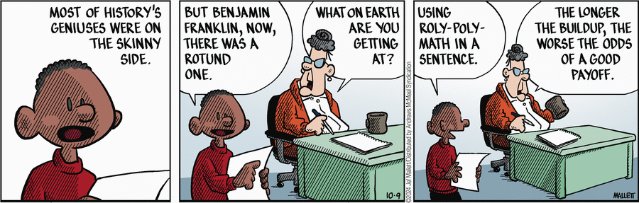 Mark H. submitted this Frazz as an OY, admitting that it “Took me a minute…” (to get the joke). However, since at least one Editor still doesn’t understand it, a CIDU has been added to the tags. Perhaps Mark would be so kind…?