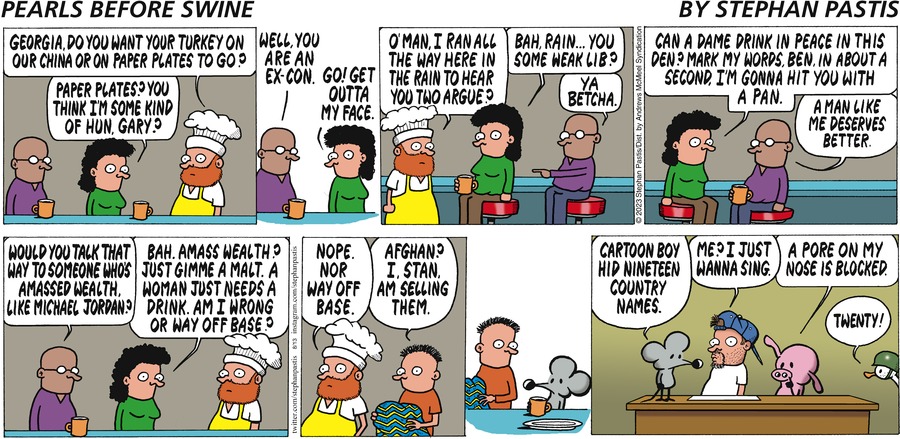 A find-the-hidden-names puzzle from Pearls Before Swine!