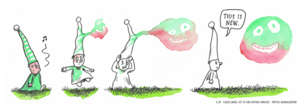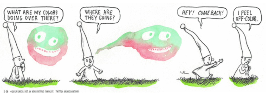 It’s too early to be sure where this will go, but Liniers has started a story arc related to color loss: